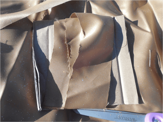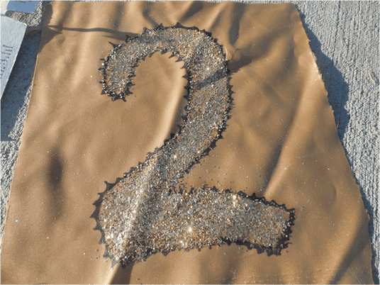 The first step is to cut out a long strip of fabric to use to hang all the other banner components on. Next cut out four large squares. I eyed mine and they turned out to be about 8 inches by 8 inches. I cut number stencils out of cardboard and used them to apply the glue and glitter. I made slits in the upper corners of the fabric panels so I could string them onto the original strip of fabric.