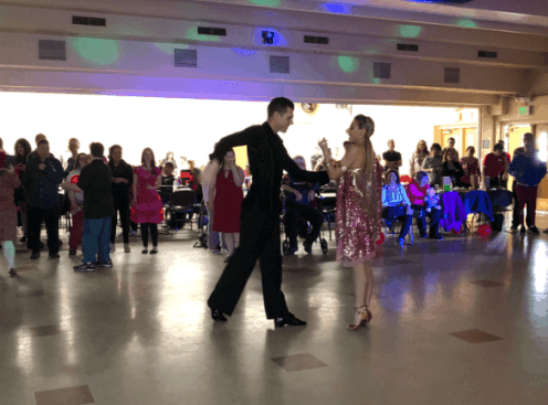 Everyone gets a beautiful rose corsage or boutonnière, and dances the day away with friends. There were several special activities during the dance as well, like a caricaturist, face painter, photo booth, raffle, and professional ballroom dancers.