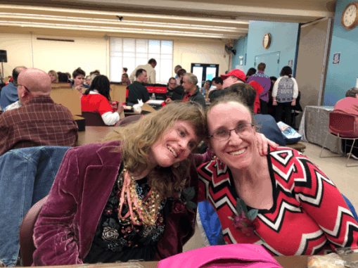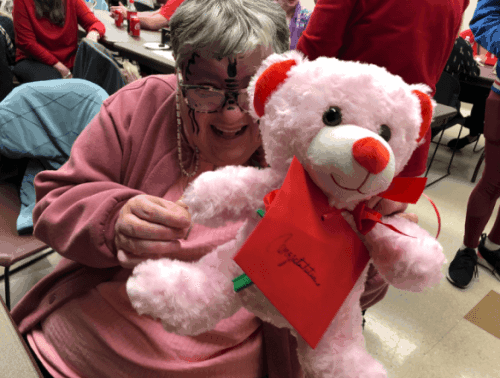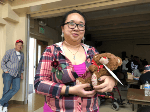 Another of our Ambassadors, Lisa (pictured on the left, in the purple coat), loves coming to the Valentine’s Day dance, and has never missed a single one. Her favorite thing about the dance is that she gets to see all her friends at once. Lisa is a big time crafter. She loves crafting so much that she has decided that it is time to dedicate a table at home to all of her projects. The Day of Love was especially inspirational for Lisa; she made handmade cards for her family as special gifts for Valentine’s Day, and she is remodeling a table with little red hearts and roses all over it. When she’s not creating beautiful crafts, she is making sure all of the arc vouchers are being sorted perfectly. In the spirit of Valentine’s Day Lisa wanted to let everyone know that they are a “blessing to have, and always will be.”