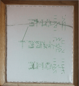 After it was nice and tight I counted the squares the length and width of the frame and made a plan for my embroidery using a piece of graph paper. There’s probably an easier way to do this but I went old school. After I had the design mapped out I started stitching! I used mint green embroidery floss that I had left from a previous project.