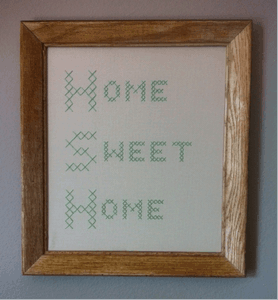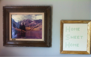 I moved into a new home last summer and am just now figuring out what to put on the walls (no judgment, please). ARC has been a major resource in this venture. Not only have I found pictures and frames, but I’ve also found craft items that I’ve used to make wall art. My most recent project was this Home Sweet Home cross stitch: