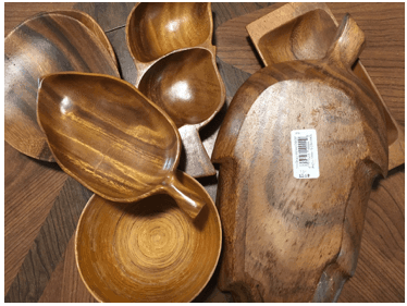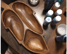 I’m so excited for fall that I’ve started noticing autumn-related things more and more. Recently I saw some leaf-shaped wooden bowls at an Arc Thrift Store and decided they’d be perfect for some crafting with friends. The smaller leaf bowls each cost $0.99 or $1.99 and the largest was only $3.99. I purchased some other wooden bowls and receptacles so that everyone had choices in what they were making.