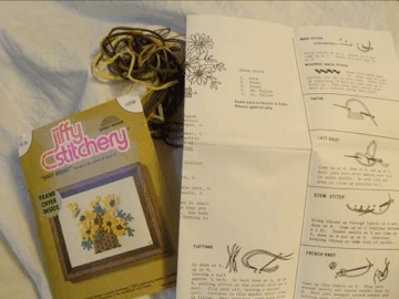 A vintage crewel embroidery kit for $1.99!!! Can you feel my excitement?! I snatched it off of the shelf before anyone else spotted my good fortune…though no one was nearby at the time. I get a little bit too excited about a great vintage find. Or so I’ve been told J One of the main tips I give to people that initially get hooked on thrifting is to dig deep. Sometimes the truly great treasures are hidden in the bottom of the pile or on the back of the shelf. But these treasures are absolutely worth the effort.