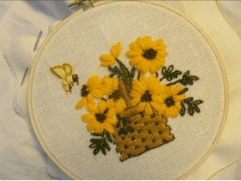 With this crewel kit, I quickly set to work figuring out the different crewel stitches. I love to cross stitch but I’ve never learned any other “real” stitches. I typically make up my own. But not this time! This time Jiffy Stitchery was going to instruct me properly. The kit had great instructions and all of the yarn and cloth I would need, as well as an embroidery needle.