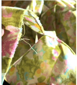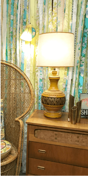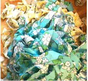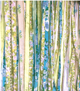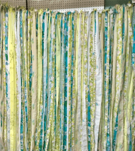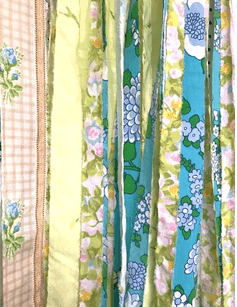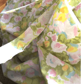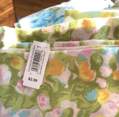 In order to cover up a pegboard wall and make it a bit prettier, I hit my favorite home décor store: arc Thrift. I looked through the selection of curtains and fabric, but ended up settling on some vintage sheets to help me make my floor-to-ceiling garland of fabric strips. I found some great prints of all sizes that were only a few dollars each. I bought five different patterns total for my project.