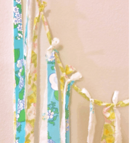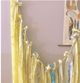 And just like the ripping, I tied knot after knot after knot until the garland was full and the row of knots along the top piece were one next to the other with no space in between.