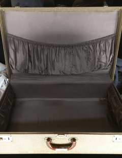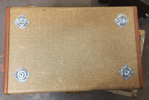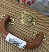 I have wanted to try this project for a long time, but up until recently, I hadn’t found the perfect vintage suitcase. I wanted one that was perfectly flat on top and big enough to be a functional side table. The other day at an arc thrift store I found this guy for only $7.50 (half off from $14.99):