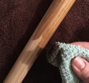 I had some furniture stain left from another project and started by rubbing it onto each leg and letting them sit overnight. (If I had used ones from a piece of arc furniture I could have skipped this step; 20/20 hindsight!)