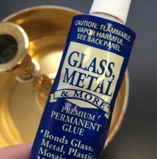 Then I used special metal-on-metal glue to make sure the candlesticks and the tiers were going to hold together. (This glue was intense-I definitely needed ventilation, just fyi if you use it.)