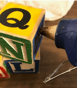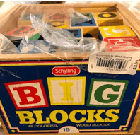 I spotted this giant box of blocks over in the toy section for only $2.99 and decided to use them to spell out holiday words as a base for the candles.