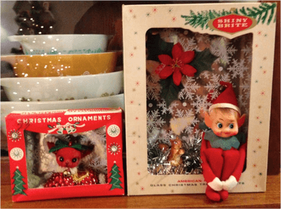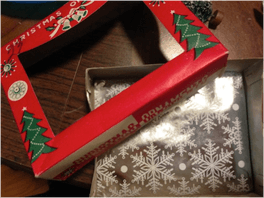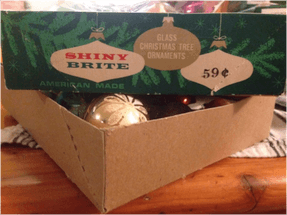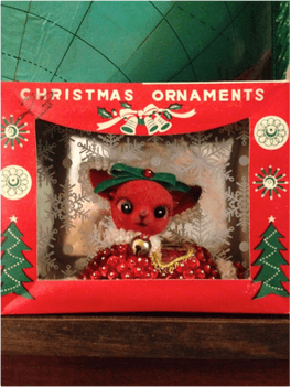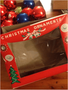 I had a bunch of vintage ornament boxes leftover after making an ornament wreath and some of them had great, retro designs. I decided to create some vintage Christmas shadow boxes for further decoration.
