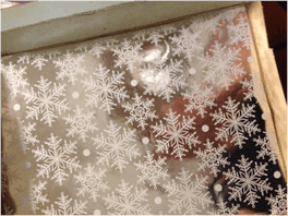 Then I covered the back of the boxes with shiny wrapping paper in order to make it brighter when I put the items in and help make them more visible.