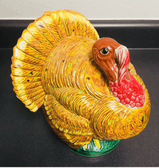 In terms of decorations for holidays, Thanksgiving doesn’t always rank very highly on the list. However, a Thanksgiving centerpiece is always great in the middle of the dining table. I found some great options at arc thrift this week for turkey and fall-themed centerpieces.