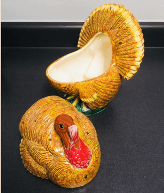 Another funky option I found is this giant ceramic turkey dish ($4.99 at arc thrift).