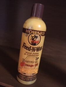 The final product that I use is Feed-N-Wax. It’s by the same makers as the Restor-A-Finish and the two are meant to be used together. The Feed-N-Wax moisturizes the wood and shines it up so that it glows. You buff it on and wait a bit and then wipe off any remainder with a rag.