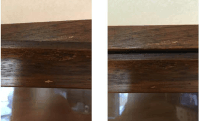 You can see in the pictures below how the scratches are less noticeable from left to right, in the wood that’s gone through all three steps.